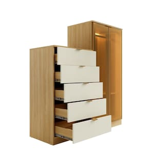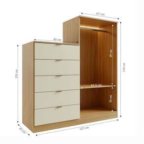 Equipada com 5 gavetas espaçosas e com duas portas , permite separar e organizar cada item do bebe , desde as pequenas peças até as mais volumosas