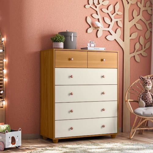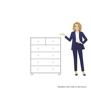 A Cômoda Balão é um produto com design atemporal e um toque de modernidade, seus puxadores arredondados e com acabamento metalizado bronze dão um charme a mais ao produto. Possui 06 gavetas com corrediças telescópicas, trava de sustentação nas gavetas maiores, caixaria e frentes de gavetas em 15 mm, interna 100% na cor do produto e pés inclusos Acabamento da Gaveta: Pintura UV Acabamento dos Pés: Verniz Altura dos Pés: 5 Ambiente Principal: Quarto Infantil Complexidade da Montagem: Alta: deve ser montado por um montador especializado Cor: Cinamomo / Off White Cor Interna: Carvalho Grife Escala de Brilho: Semi-Fosco Escala de Brilho da Gaveta: Semi-Fosco Gaveta com Chave: Não Itens Inclusos: 1 Cômoda, Kit Ferragens e Manual de Montagem Linha ou Coleção: Albatroz Manual de Montagem e Instalação: https://cdn2.madeiramadeira.com.br/atributo/albatroz-moveis/1556531-esquema-180-cOmoda-balAo.pdf Material da Gaveta: MDP Material do Fundo: HDF Material do Puxador da Gaveta: ABS Material dos Pés: ABS Material Principal: MDP Necessita Montagem: Sim Origem do Produto: Nacional Pés Reguláveis: Não Peso: 42 Peso Máximo por Gaveta: 3 Possui Espelho: Não Possui Nichos: Não Possui Pés: 04 Possui Portas: Não Possui Prateleiras: Não Quantidade de Gavetas: 06 Gavetas Recomendações de Uso, Manutenção e Limpeza: Limpar com flanela ou pano macio seco, não utilizar produtos abrasivos, desengordurantes, álcool ou solvente. Não expor o produto diretamente à luz solar e à umidade. Sapatas Niveladoras: Não Sistema de Montagem: Parafusos, cavilhas e minifix Suporta Até (kg): 28 Tipo de Corrediça da Gaveta: Metálica Telescópica Tipo de Puxador da Gaveta: Externo Ean: 7909903441206