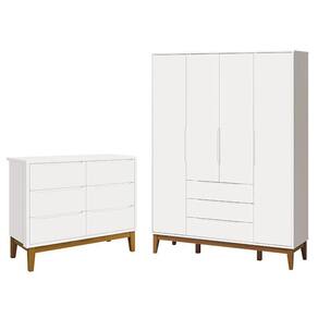 Cômoda Infantil 6 Gavetas com Guarda Roupa Classic Elfe Branco Acetinado com Pés Madeira - Reller