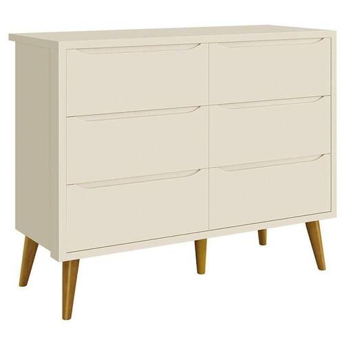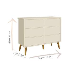 Cômoda Infantil 6 Gavetas Retrô Theo Areia Acetinado com Pés Madeira Reller