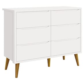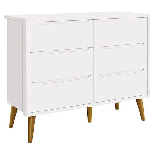 Cômoda Infantil 6 Gavetas Retrô Theo Areia Acetinado com Pés Natural – Reller