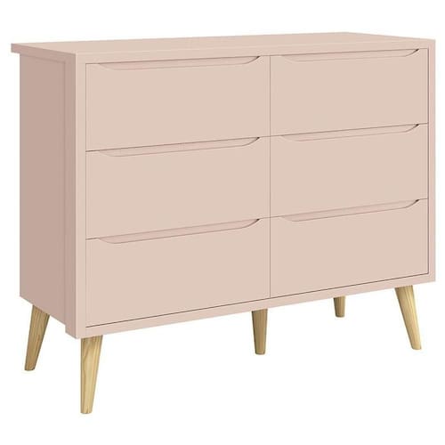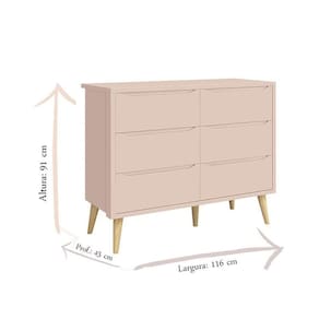 Cômoda Infantil 6 Gavetas Retrô Theo Rosa Acetinado com Pés Natural Reller