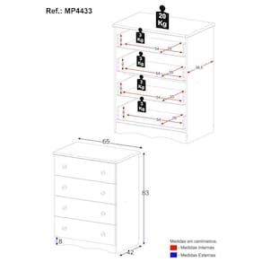 *O produto será entregue desmontado e não disponibilizamos o serviço de montagem. Acabamento: FF/Pintura UV | Material: MDP | Referência do Modelo: MP4433 | Coleção: | Instruções de Cuidado: Limpar com pano seco para retirar o pó. Não utilizar produtos químicos ou abrasivos a limpeza. Não aplicar lustra móveis. | Sistema de Montagem: O produto acompanha manual de montagem juntamente com kit ferragem. O produto será entregue desmontado e não disponibilizamos o serviço de montagem. | Produto Composto por: 1 cômoda, manual de montagem e kit ferragem. | Com Gaveteiro: Sim | Corrediça: Telescópica | Material do Puxador: ABS | Quantidade de Gavetas: 4 | Quantidade de Portas: 0 | Quantidade de Prateleiras: 0 | Altura Montado: 83 | Largura Montado: 65 | Profundidade Montado: 42 | Tamanho (L x A x P): 65 x 83 x 42 | Tonalidade: Branco | Peso do Produto: 25 | Garantia do Fabricante: 3 | É Desmontável: Não | Fabricante: Multimóveis | Produto: Cômoda | Altura (cm): 83 cm | Largura (cm): 65 cm | Profundidade (cm): 42 cm | Tempo de Garantia: 3 meses | Tipo de móvel: Cômoda | Material das gavetas: MDP | Com corrediças: Sim | Com portas: Não | Material de dobradiças: N/A | Com prateleiras: Não | Com prateleiras ajustáveis: Não | Requer Montagem: Sim | Inclui manual de montagem: Sim | Inclui acessórios de montagem: Sim | Peso (kg): 25 kg | Material do corpo: MDP | Estilo: Moderno | Marca: Multimóveis | Quantidade de caixas de embalagem: 02 | Destaque 1: Produzida em MDP: maior durabilidade e resistência. | Destaque 2: Gavetas com corrediças telescópicas: abertura total e silenciosa. | Destaque 3: Puxadores redondos em ABS: práticos e delicados. | Destaque 4: Rodapé: visual elegante e harmonioso. | Destaque 5: Tamanho do produto montado (L x A x P): 65 x 83 x 42 cm | Baterias são necessárias?: Não | Certificação de teste externa: N/A | Dimensões do item P x L x A: depth#value=42;depth#unit=centimeters;width#value=65;width#unit=centimeters;height#value=83;height#unit=centimeters | Is Fragile: Não | Peso do item: unit=kilograms;value=25 | Quantidade de itens: 1 | Número da peça: MP4433.697 | É resistente à umidade: Não | Com alças: Sim | Com pés: Não | Com rodas: Não | Tipo de Garantia: Garantia do Fabricante | Montagem: Necessita Montagem | País de Origem: Brasil | Altura do Produto com Embalagem: 20 cm | Largura do Produto com Embalagem: 46 cm | Comprimento do Produto com Embalagem: 86 cm | Tipo da embalagem do vendor: Sem embalagem adicional | Peso do Produto com Embalagem: 25000 g | Cor: Branco