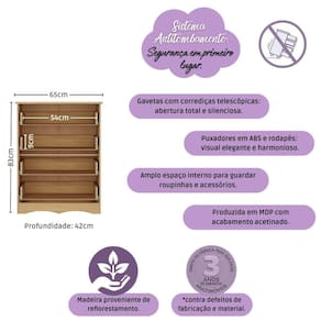 - 4 gavetas: amplo espaço interno para organizar roupinhas e acessórios.