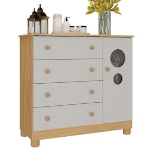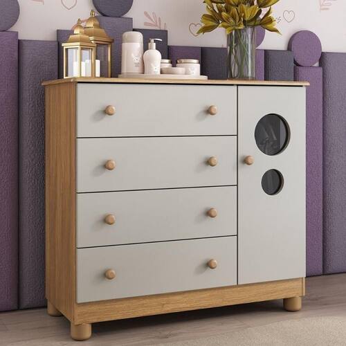 Cômoda Infantil 95cm 1 Porta Com Vidro E 4 Gavetas Bombom Multimóveis MP4464 Madeirado/off White