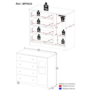 - 1 porta e 4 gavetas (frontais em MDF): amplo espaço interno para organizar roupinhas e acessórios.