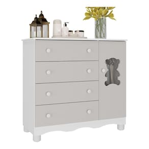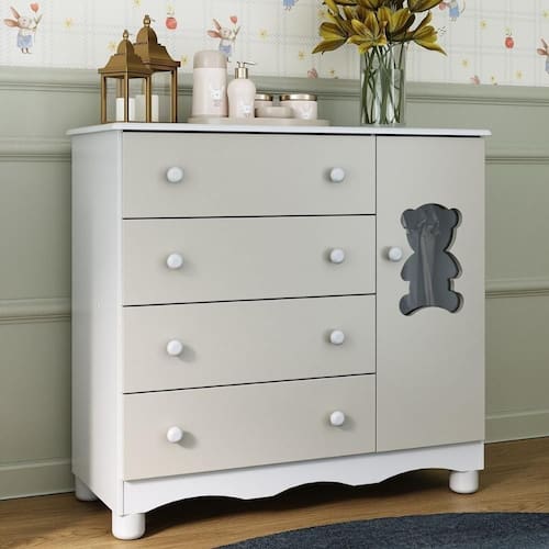 - 1 porta e 4 gavetas (frontais em MDF): amplo espaço interno para organizar roupinhas e acessórios.