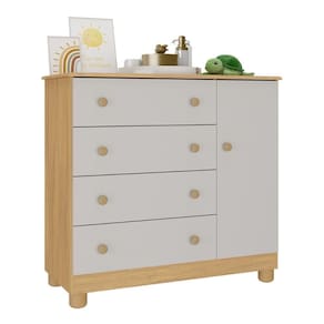 Cômoda Infantil 95cm 1 Porta E 4 Gavetas Allegra Multimóveis Mp4444 Madeirado/off White Madeirado/off White