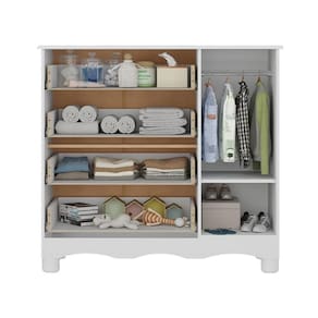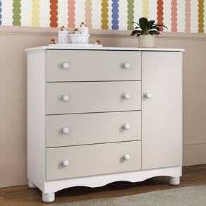 - 1 porta e 4 gavetas: amplo espaço interno para organizar roupinhas e acessórios.