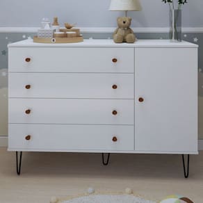 O(a) Cômoda Infantil Aurora 1 Porta 4 Gavetas Branco - Minastex é produzido em MDP na escala de brilho Semi-Brilho, e possui um grau de dificuldade de montagem: Médio.