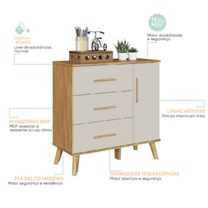 4 gavetas espaçosas + 1 porta com excelente aproveitamento interno