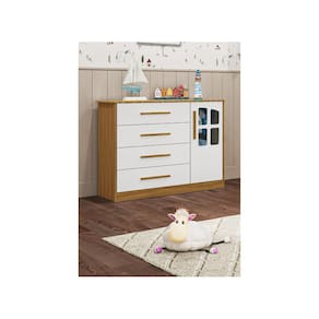 Tampo da cômoda com bordas laqueadas; acabamento interno textura linho ; puxadores em MDF revestido ; Corrediças telescópicas;