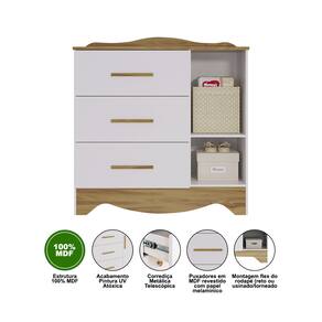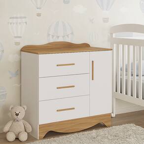 A Cômoda Infantil Clara 1 Porta Lisa Plus é ideal para manter o quarto do bebê sempre organizado com estilo e praticidade. Produzida em 100% MDF com pintura UV atóxica, garante durabilidade, segurança e um acabamento sofisticado. Seu design clean combina o Branco Brilho com a tonalidade amadeirada Amêndoa, harmonizando facilmente com diversos estilos de decoração infantil.