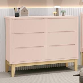Cômoda Infantil Classic 6 Gavetas Rosa Fosco Com Pés Madeira Natural - Reller Móveis Rosa Fosco
