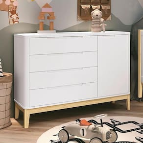 Cômoda Infantil Classic Boom Branco com Pés Madeira Natural - Reller