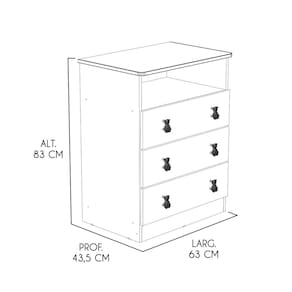 A Cômoda Infantil é a solução prática e elegante para manter o quarto sempre organizado. Com um design funcional, ela oferece amplo espaço interno por meio de gavetas espaçosas, perfeitas para guardar roupinhas, fraldas e outros itens essenciais do dia a dia. Produzida em MDP de qualidade, conta com gavetas que garantem abertura suave e puxadores decorativos plásticos que complementam o visual do móvel. Compacta e versátil, a cômoda se adapta facilmente a diferentes estilos de decoração, unindo praticidade e charme em um só produto. CARACTERÍSTICAS TÉCNICAS: - Estrutura em MDP de 15 mm - Acabamento Brilho na cor Branco e Rosa - Gavetas com Roldanas - Puxadores Decorativos em Plástico - Dispõe de 1 Nicho - Suporta até 5 kg por Gaveta INFORMAÇÕES TÉCNICAS: Altura: 83 cm Largura: 63 cm Profundidade: 43,5 cm Peso: 25 kg INFORMAÇÕES ADICIONAIS: -ATENÇÃO: Não trabalhamos e não nos responsabilizamos pela montagem do móvel. Antes da montagem conferir se o produto está de acordo com o que comprou, produto montado e danificado pela montagem não será aceito troca. -As imagens ambientadas são meramente ilustrativas e podem apresentar itens que não compõe o produto. As cores do produto podem variar de acordo com o monitor, a iluminação do ambiente ou sua percepção visual. -Limpeza: Deve ser feita com pano macio e seco ou levemente umedecido com água e sabão neutro. Não devem ser utilizados abrasivos como palha de aço e objetos cortantes. Garantia para defeitos de fabricação conforme Código de Defesa do Consumidor.