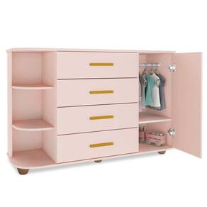 A Cômoda Infantil com Cantoneira e 4 Gavetas 100% MDF New Lorena Rosê, da Phoenix Baby é a escolha ideal para quem busca funcionalidade e estilo no Quarto Do Bebê. Com sua estrutura 100% MDF e acabamento em pintura atóxica UV de alto brilho, a Cômoda Infantil não só garante um visual encantador, mas também promete durabilidade e . As gavetas com corrediças telescópicas oferecem um manuseio suave e silencioso, perfeito para não atrapalhar o sono do bebê, enquanto a cantoneira adiciona um toque de elegância e aproveitamento de espaço com nichos, de forma segura sem quinas já pensando no seu bebê. A Cômoda com Porta acompanha 1 cabideiro em alumínio e 1 prateleira interna, de uso opcional, é um bônus para organizar as roupinhas com facilidade. Se queria deixar o quarto mais moderno e funcional acabou de encontrar o móvel certo!Adicione em seu carrinho de comprar e garanta a sua! ESPECIFICAÇÕES Dimensões do ProdutoLargura: 135 89 cm.Profundidade: 45 52 Medidas Porta (Largura x Altura): 28 x 81 cm.Gavetas (Largura x Altura): 71,5 x 19 cm.Características do ProdutoMaterial da Estrutura: 100% Suportado: 50 kg distribuídos.Acabamento: Pintura Atóxica de Brilho: Acetinado.Quantidade de Portas: 1 de Dobradiças: Metá Cabideiro: Sim, uso opcional.Material do Cabideiro: Alumínio.Quantidade de Gavetas: 4 de Corrediças: Telescó de Puxador: PVC Prateleiras: Sim.Quantidade de Prateleiras: 3 Nichos: Sim.Quantidade de Nichos: 3 Pés: de Pés: PVC.Diferenciais: - Design moderno.- Amplo espaço interno.- Cantoneira com nichos.- Prateleira interna e cabideiro de uso opcional.Sistema de Montagem: Minifix / Cavilhas / de Montagem: Sim.Complexidade da Montagem: Média.Volumes: 2 Volumes.Garantia do Fabricante: 90 dias contra de fabricação.Montagem: Recomendamos que seja feita por um .Recomendação de Limpeza: Pano levemente úmido e detergente neutro.Observações importantes - Produto para uso residencial em ambiente interno, não devendo ficar exposto diretamente ao sol, calor e umidades excessivas.- Pode haver alguma diferença de tonalidade entre a imagem e o produto real, por conta do tratamento de imagens e a calibração de cores do seu monitor.- As imagens são meramente ilustrativas, não acompanham objetos de decoração e eletrônicos.- Ao receber a mercadoria, o cliente deve verificar as condições da embalagem, caso haja alguma não assine o de .- Montagem, desmontagem e outras instalações serão de responsabilidade do cliente. Não nos responsabilizamos, no ato da , por subir escadas/elevadores ou pelo por guincho em apartamentos. Eventuais despesas são de responsabilidade do comprador.- Confira as dimensões do produto e certifique-se de que passará normalmente por supostos elevadores, portas, escadas e/ou corredores de sua residência.