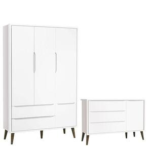 Cômoda Infantil com Porta e Guarda Roupa 3 Portas Theo Branco Acetinado com Pés Amadeirado ? Reller