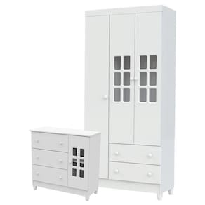 Cômoda Infantil e Guarda Roupa 3 Portas Mariah Branco Brilho - Carolina