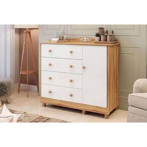 Cômoda Infantil Elô c/ 1 Porta e 4 Gavetas Branco/Amendoa - Peroba Marca: Móveis Peroba