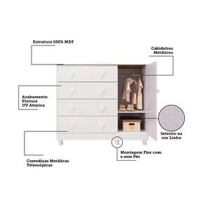 Tipo de Cabideiro - Aéreo Material das Portas - Portas em MDF Tipo de Dobradiças - Dobradiças Metálicas Quantidade de Portas - 1 Porta de Abrir Material das Gavetas - Gavetas em MDF Tipo de Corrediça - c/ Corrediças Telescópicas Quantidade de Gavetas - 4 Gavetas Tipo dos Pés - ABS/PVC Quantidade de Pés - 6 pés Material das Prateleiras - Prateleiras em MDF Quantidade de Prateleiras - 1 Prateleira
