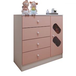 O(a) Cômoda Infantil Escotilha 1 Porta 4 Gavetas Branco/Rosa - Loja é produzido em MDF e MDP na escala de brilho Fosco, e possui um grau de dificuldade de montagem: Médio.