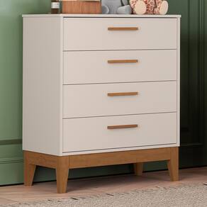 A Cômoda Infantil Flip 4 Gavetas é ideal para manter o quarto do bebê organizado com praticidade e segurança. Produzida em MDF com pintura UV atóxica, conta com 4 gavetas espaçosas que deslizam suavemente através das corrediças telescópicas. Os puxadores em MDF revestidos, junto ao tampo e cantos arredondados, garantem mais charme e proteção no dia a dia. Para maior segurança, possui sistema antitombamento e pés em madeira que oferecem estabilidade e resistência.