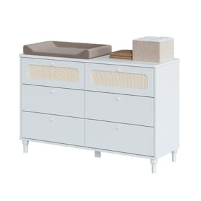 Com 6 gavetas espaçosas e trilhos telescópicos, ela oferece organização prática e silenciosa. Fabricada em MDF com pés e puxadores em madeira maciça, é resistente e estável. Seu acabamento laqueado com pintura atóxica garante e fácil limpeza. O design minimalista com cantos arredondados traz elegância e ao quartinho, além do sistema anti tombamento que oferece proteção extra.