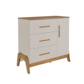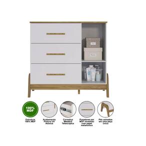 A Cômoda Infantil Guti Retro Peroba Cor Off White com Amendoa, com puxadores em ABS, cabideiro metálico, tampo com bordas laqueadas, molduras laterais em MDF revestido, pés usinados em peça maciça de MDF 25 mm, linho interno e sistema antitombamento. Um design retro encantador com a praticidade que você precisa para organizar os itens do seu pequeno. Com acabamentos em off white e amêndoa, a cômoda é perfeita para trazer um toque de elegância ao ambiente. Ela se destaca-se pelo seu estilo único que se adapta a diferentes decorações. O acabamento em peroba e as cores harmoniosas proporcionam um visual atraente, enquanto suas linhas retas garantem que o móvel seja atemporal e sempre em alta. Além do seu design encantador, a Cômoda Guti Retro é uma escolha inteligente para quem busca qualidade e funcionalidade. Com espaço suficiente para armazenar roupas, brinquedos e outros itens essenciais, ela se torna um aliado na rotina do dia a dia. O material MDF garante que o móvel seja resistente e fácil de manter, enquanto o estilo retro proporciona um charme especial ao quarto infantil.