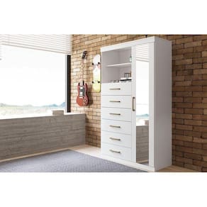 Cômoda de Quarto Marabá 1.6 c/ 1 Porta 2 Nichos e 6 Gavetas c/ Espelho Branco - Santos Andirá