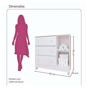 A Cômoda Infantil New Selena é o toque de charme e organização que o quartinho do seu bebê merece. Com um design delicado e acabamento impecável, ela combina beleza e praticidade, oferecendo amplo espaço para guardar roupinhas, acessórios e outros itens essenciais do dia a dia. Sua porta lateral e gavetas espaçosas facilitam a rotina, enquanto o tom branco traz leveza e suavidade ao ambiente, criando uma atmosfera tranquila e acolhedora. Pensada com todo cuidado, esta cômoda é a aliada perfeita para manter tudo sempre em ordem e deixar o espaço ainda mais especial. Confira as características técnicas e aproveite!
