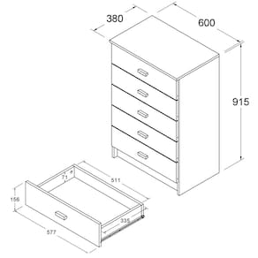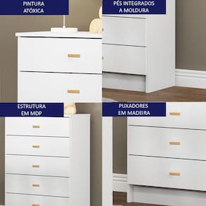 Modelo: Comoda Infantil Para Quarto 5 Gavetas 60X91X38 cm BB120 Branco Dtall