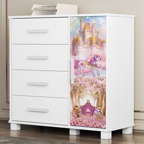 Cômoda Infantil Para Quarto 80cm 4 Gavetas Carruagem Rosa Z53 - Mpozenato