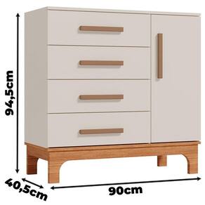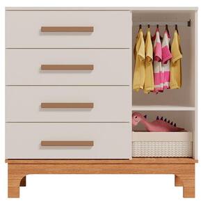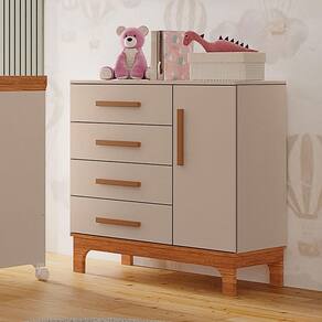 Está montando o quartinho do seu pequeno? Então apresentamos para você esta bela cômoda da linha Pega Pega. Com quatro gavetas espaçosas equipadas com corrediças metálicas garantindo um deslizamento suave. Além disso, conta com uma porta oferecendo um ótimo espaço interno para você guardar suas roupas e acessórios. Fabricado pela Canaã, é desenvolvido em 100% MDF de alta resistência e madeira vindo de reflorestamento, sendo uma perfeita escolha para quem deseja organização pensando na sustentabilidade e durabilidade. Confira e aproveite!