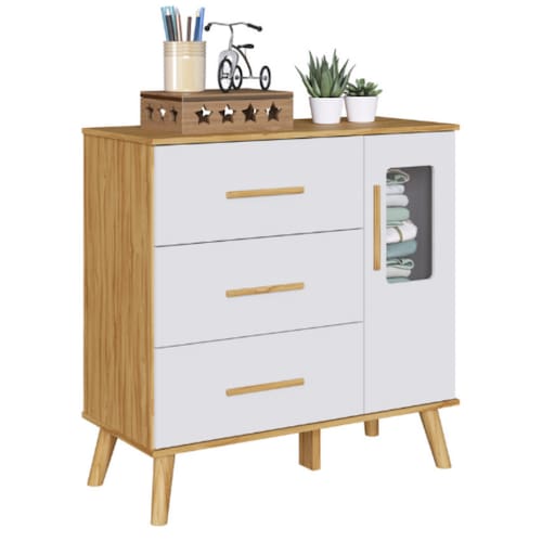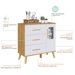 Produzida em MDF/MDP de alta qualidade, possui estrutura firme e durável, além de pés e puxadores arredondados em madeira que garantem charme e segurança no uso diário. A versão lisa, sem janela na porta, mantém um visual discreto e elegante, ideal para composições minimalistas.