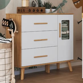 Com sua proposta funcional e visual neutro, a cômoda é perfeita para organizar roupinhas, fraldas, brinquedos e acessórios com praticidade, deixando o quarto do bebê sempre em ordem e cheio de estilo.