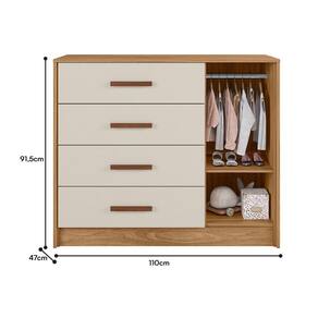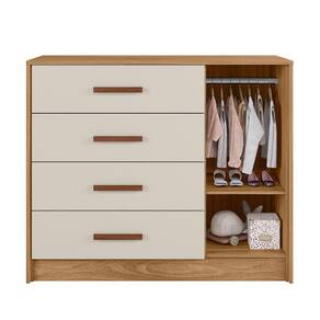 A Cômoda Infantil Pérola é uma adição perfeita para o quarto do seu bebê. Possui uma estrutura resistente de MDP e acabamento de pintura UV, esta cômoda combina durabilidade com estilo. Com uma porta, quatro gavetas espaçosas equipadas com corrediças telescópicas, prateleira e cabideiro, oferece amplo espaço interno para manter roupas e acessórios organizados. Os puxadores em MDF revestido e as dobradiças metálicas adicionam um toque de elegância. Proporcione praticidade e charme ao ambiente infantil com esta cômoda funcional e cheia de estilo.