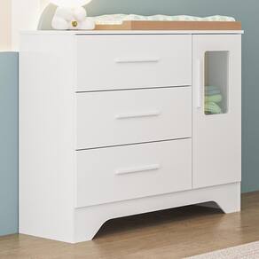 Cômoda Infantil Popy Retrô Plus 1 Porta com Janela e 3 Gavetas - Móveis Peroba