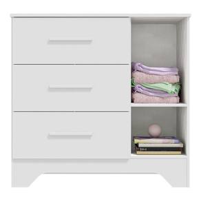 A Cômoda Infantil Popy Retrô Plus une charme e funcionalidade em um design encantador. Produzida em MDF com pintura UV atóxica, conta com 1 porta com janela em PETG Cristal/Acrílico, prateleira interna e 3 gavetas com corrediças telescópicas, garantindo abertura suave e segura. Os puxadores em MDF revestido e as duas opções de rodapés (usinados ou retos) proporcionam versatilidade na decoração. Compacta e espaçosa, suporta até 4kg por gaveta. Ideal para organizar com estilo o quartinho do bebê.