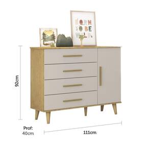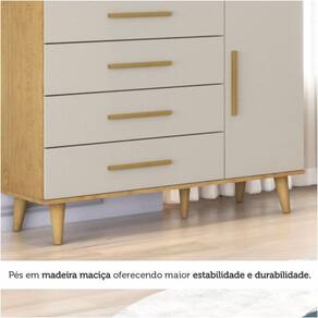 Um móvel leve e delicado em seu desenho, mas que oferece resistência e estabilidade em sua estrutura. No estilo retrô, a cômoda fraldário é fabricada em MDF e ainda conta com um sistema de anti-tombamento e corrediça telescópica nas gavetas.