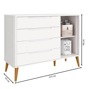Cômoda Infantil Retrô Boom Branco com Pés Amadeirado - Reller