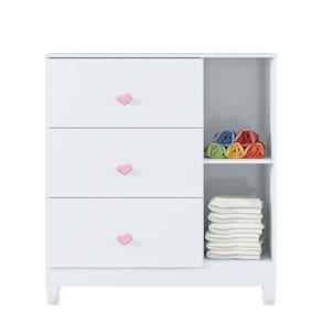 A Cômoda é um complemento muito utilizado nos quartos. A mamãe organiza com praticidade as roupas e acessórios para sua filha. Possui 1 Porta com dobradiças metálica e imagem de impressão digital que levam a criança a desenvolver sua imaginação vivenciando o mundo do castelo da princesa. 3 práticas gavetas com corrediças metálicas e puxadores temáticos coração. Pés em plástico resistente que facilita a limpeza.