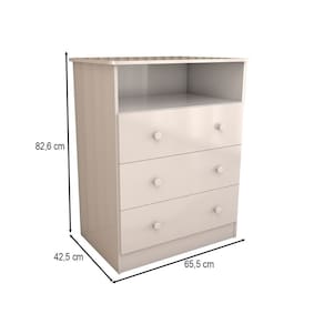 O(a) Cômoda Infantil Sueño 3 Gavetas 100% Mdf Branco Brilho - Loja é produzido em 100% MDF na escala de brilho Brilhante e Semi-Brilho, e possui um grau de dificuldade de montagem: Médio.