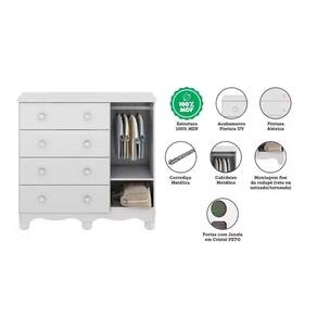 Cômoda Infantil Tedy c/ 1 Porta Cristal e 4 Gavetas Branco - Peroba Marca: Móveis Peroba