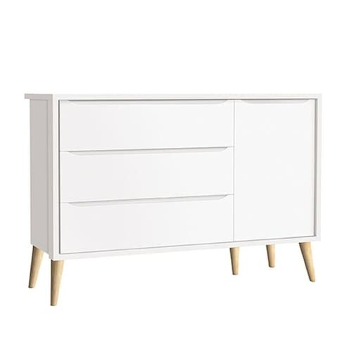 Cômoda Infantil Theo 1 Porta Branco Acetinado com Pés Madeira Natural – Reller