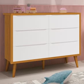 Cômoda Infantil Theo 6 Gavetas com Pés Amadeirado - Reller Móveis