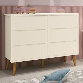 Cômoda Infantil Theo 6 Gavetas com Pés Amadeirado - Reller Móveis