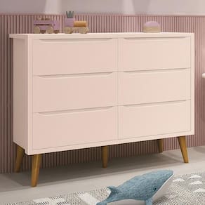 Cômoda Infantil Theo 6 Gavetas Rosa Fosco Com Pés Amadeirado - Reller Móveis Rosa Fosco