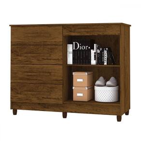 O(a) Cômoda Jasper 2 Portas 5 Gavetas Imbuia Rústico - Loja é produzido em MDP na escala de brilho Impressão UV, e possui um grau de dificuldade de montagem: Médio.