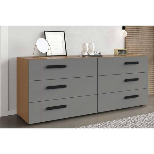 Cômoda de Quarto Lisboa c/ 6 Gavetas Freijo/Cinza - Politorno